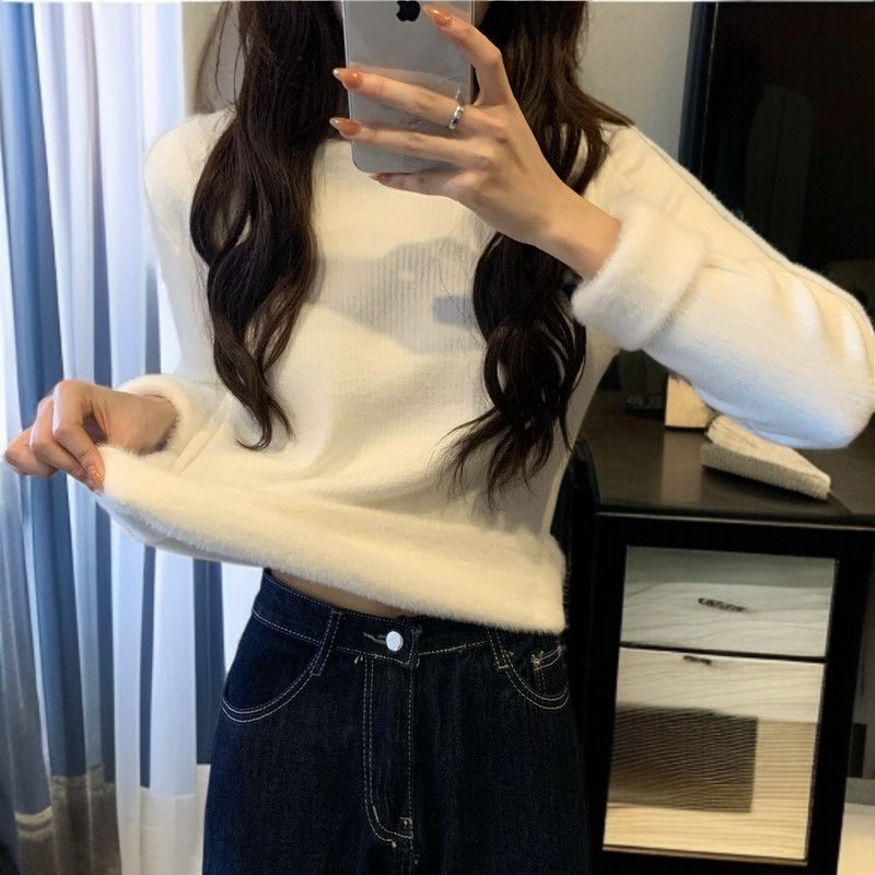● ハーフハイネックデザインで首元までしっかり防寒しつつ、上品で大人可愛い雰囲気を演出します。