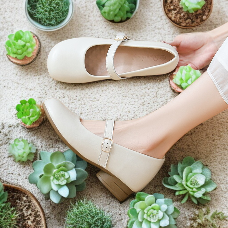 ● シングルストラップとラウンドトゥの組み合わせが足元を優しく包み込み、長時間履いても快適なフィット感を実現しました。