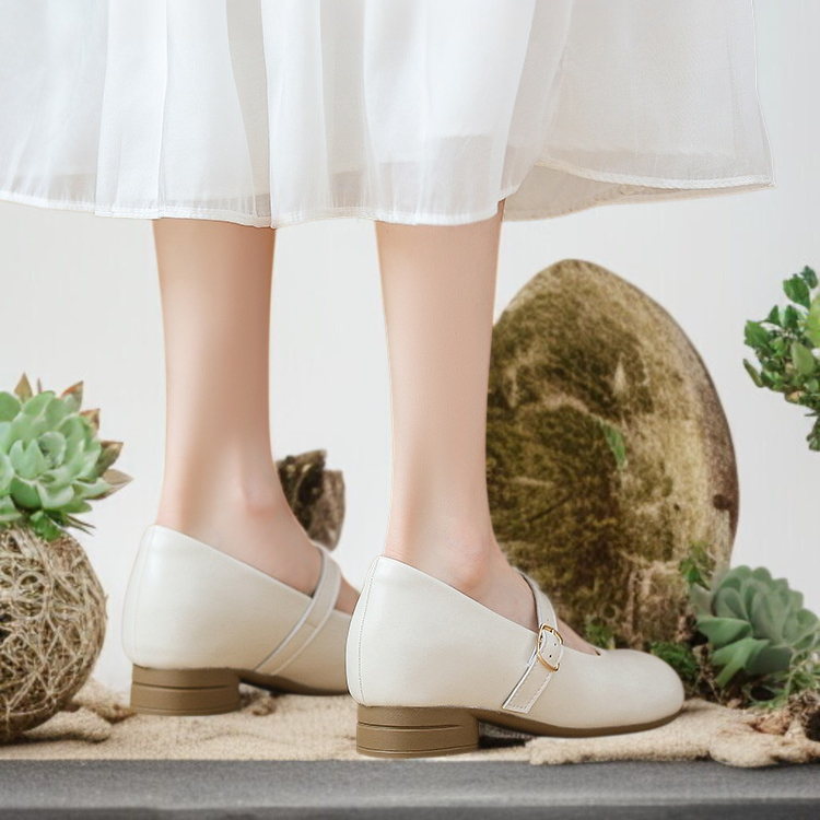 フェアリースタイルの上品なメリージェーンシューズ(女性用)2025年秋新作、シングルストラップのラウンドトゥシューズ(スカート付き)